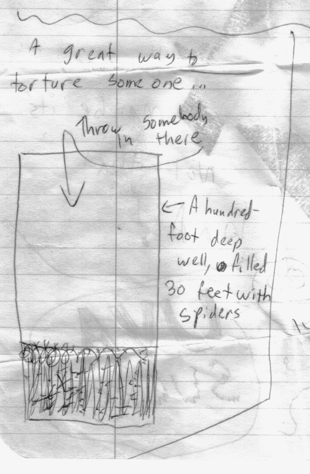 I remember cutting this unbelievably ridiculous Q and A out of some terrible doctor column in the newspaper. It was my idea to record Bill asking the question and me answering. Then, of course, to use it on one of the Poisonous Sewer Fish's tapes. We did read it behind a microphone in the Bell's basement, but whether or not we recorded it I don't know. The drawings on this piece of paper are either authentic Chuck or maybe Bill drew the figures in imitation of Chuck. Any ideas? Either way, this is likely the only extant piece of paper that all three of us contributed to. Oddly, I don't think we ever realized the typo in the answer. The first two words are reversed.